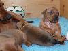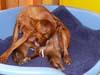 Am 27.3.2014 wurden 2 Rüden und eine Hündin in rot geboren. (Geburtsgewichte 230, 238 und 304 Gramm) Rüde 1 Bastian - Bändchenfarbe blau , Rüde 2 Bel Ami, Bändchenfarbe flieder, Hündin Barcelona - Bändchenfarbe orange