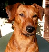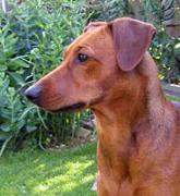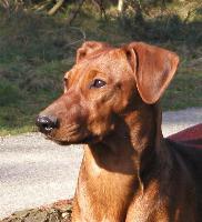 Kampioenschapsclubmatch DPVN in den Niederlanden am 18.11.2007 Richter für Hündinnen: Frau Harmsen-Rispens Richter für Rüden und Best in Show: Herr D. Baars Bei einer Beteiligung von 55 Deutschen Pinschern erhielt Duffyco's Quentchen Glück V 1; CAC, wurde "Beste Hündin", "Bester Hund der Schau" und "Clubwinner 2007" Quentchen Glück erhielt von der Richterin die Beschreibung: Große, dennoch sehr elegante Hündin mit schöner Unter- und Oberlinie, sehr gute Vorhand, fester Rücken. Prima Kopf im guten Verhältnis. Schöne Augen, prima Gebiss, korrekte Ohren. Sie steht solide und fest auf den Beinen. Warme rote Haarfarbe und prima Fell. Ein großer Tag für QuiQui und Anke. Wir freuen uns mit. |