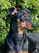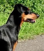 Frau Pagel richtete am 27.10.2007 die Deutschen Pinscher Rüden auf der Internationalen Ausstellung in Hannover. Duffyco's Qondor erhielt von ihr ein V 1 in der Zwischenklasse. |