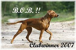 11.8.2007 CACIB Berghem (NL) Richter Herr E. Wieldraaijer Die Hündin Duffyco's Ortiz wurde in der Offenen Klasse mit V 2, R-CACIB bewertet Glückwunsch an Anneke und Ko |